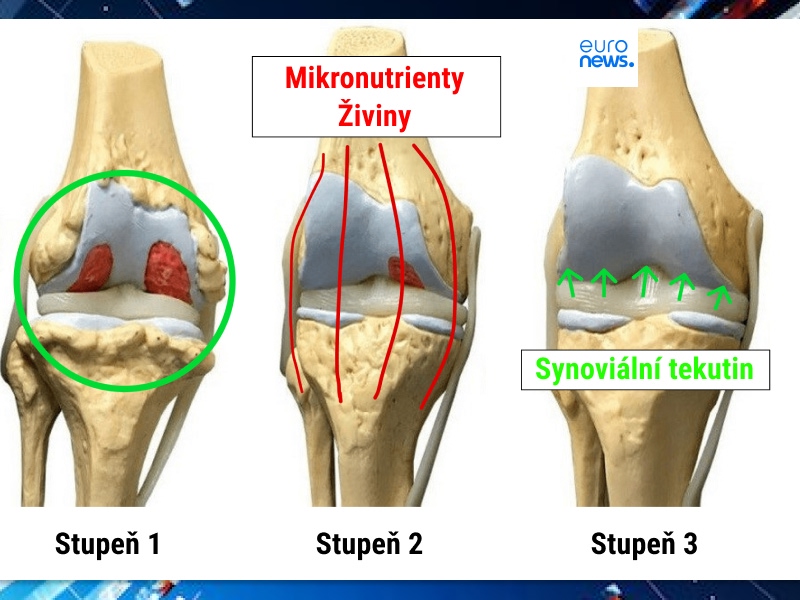 V důsledku nedostatečného prokrvení, narušeného metabolismu a poruch endokrinního systému dochází v kloubním vaku k poruše syntézy synoviální tekutiny, která funguje jako přirozené „mazivo“ pro klouby.